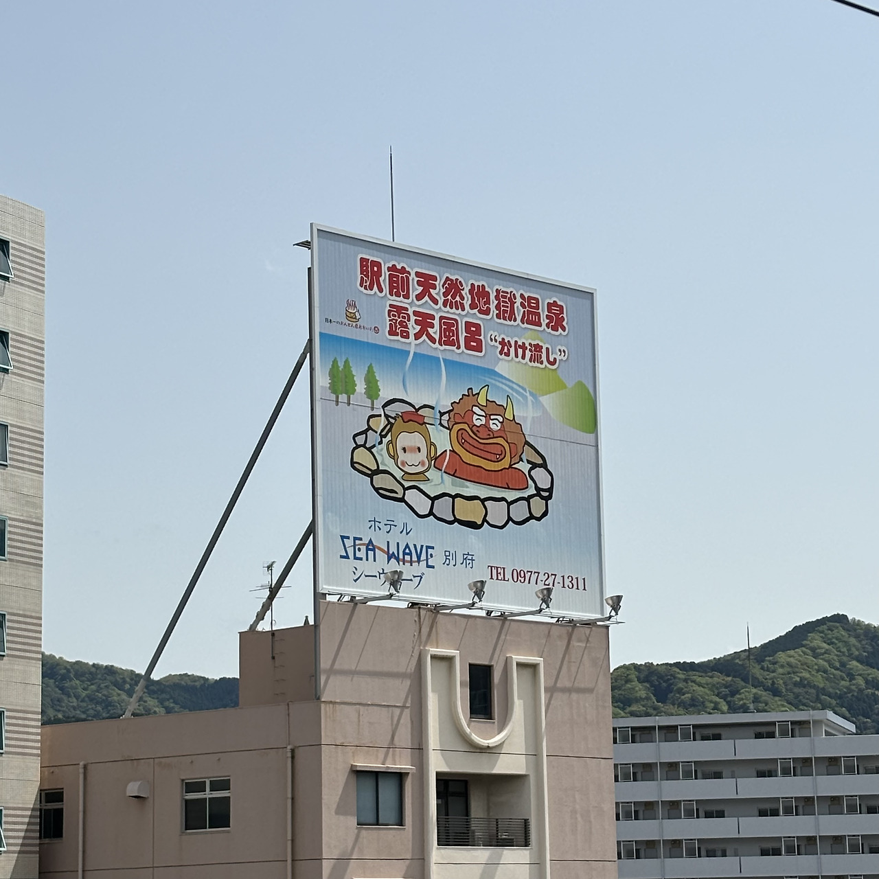 여하튼, 내리자마자 강제로 "벳푸는 온천도시예요"라는 강한 인상을 받을 수 있었다. 도시 전체가 온천 도시라 어떤 목욕탕에 가던 좋은 온천을 할 수 있고, 지옥 온천이라는 재미있는 관광코스도 있다. 아래 포스터에 보면 있는 도깨비가 지옥 온천 중에 하나에서 따온 그림이다.
