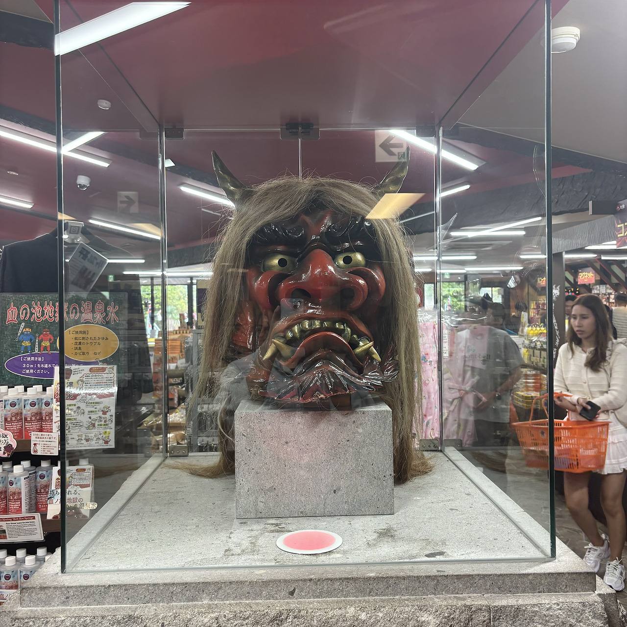 여하튼, 이렇게 걸어서 도착한 곳은 빨간 도깨비가 테마인 온천이었다. 들어가자마자 무섭기도 하고 귀엽기도 한 도깨비 오브제가 반겨준다.
