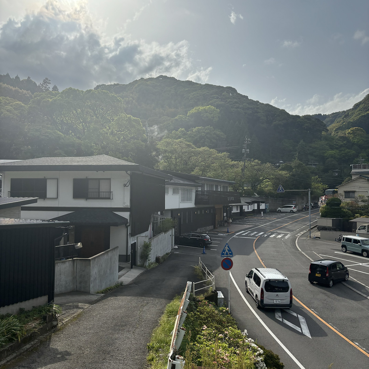 여기까지가 5개의 지옥온천이다. 다음 2개의 지옥온천은 차 타고 15분 정도 가야 하는 곳이다. 다들 버스 타길래 나도 탈까 하다가, 걸을 수 있다길래 무작정 걷기로 했다. 그런데 인도가 중간에 끊겨서 차도를 조금 걸었다.