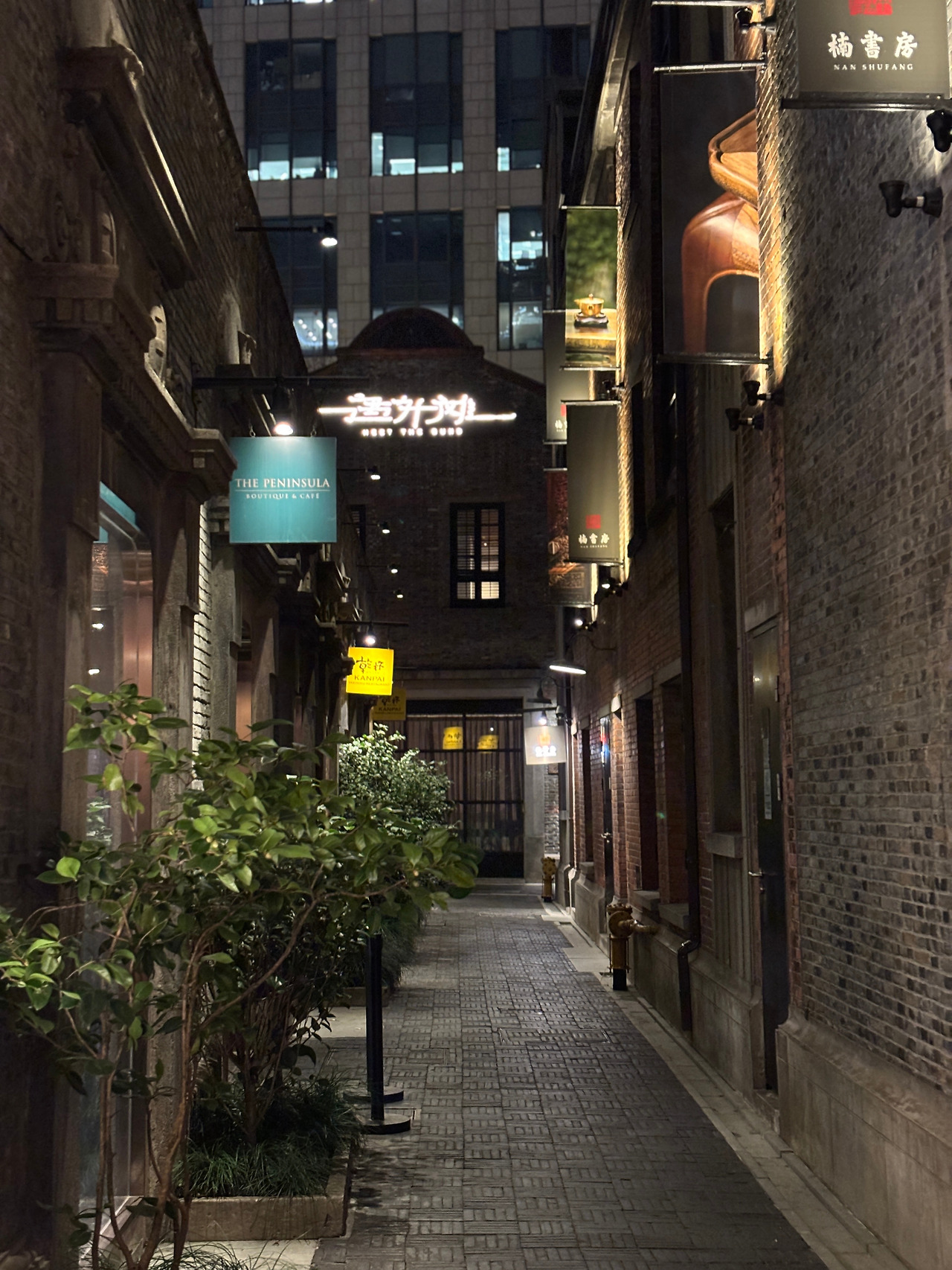 중국 거리 구성의 특징일 수도 있는데, 화려한 메인 스트릿로부터 뻗어 나온 줄기에는 이렇게 고즈넉하고 얌전한 거리들도 있다. 거리엔 사람이 붐비지 않고 벽돌 색들도 화려한 조명이 아닌 간판에서 오는 간접등만 받으니 고상한 유럽 벽돌같이 보인다. 분명 같은 벽돌일 텐데 말이다.