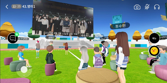 위 사진은 올해 온라인으로 진행된 순천향대의 입학식이다. 모든 학생들은 오프라인에서는 집에 멈춰있지만 온라인상에서 자유롭게 돌아다니며 콘텐츠를 즐겼다. 이것이 제한된 콘텐츠뿐이지만 메타버스라고 할 수 있다.